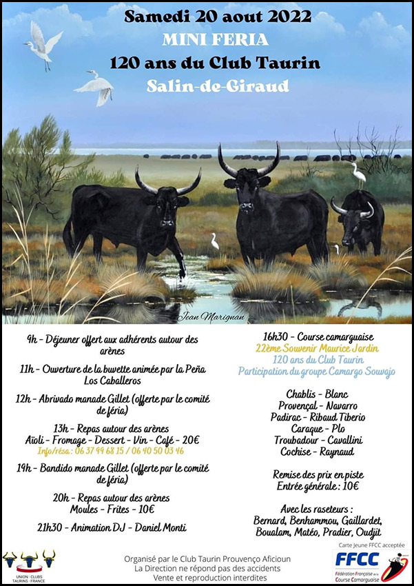 Le Club Taurin de Salin de Giraud Prouvenço Aficioun pour commémorer ses 120 ans d’existence propose une Mini Feria.