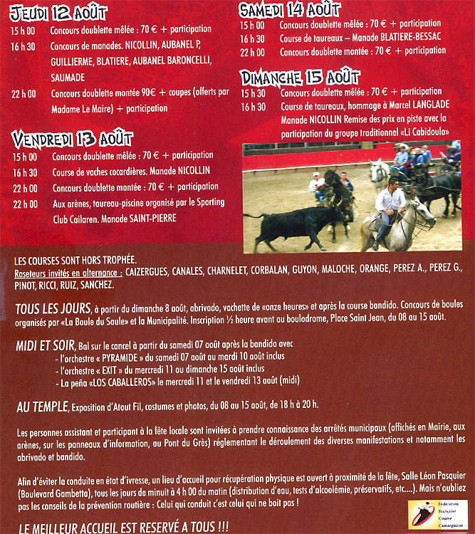 Programme du Samedi 7 août au Dimanche 15 août 2010...