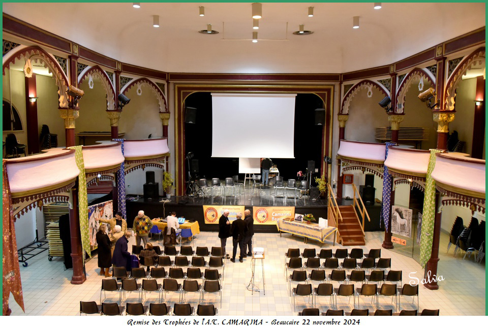 Cette XXIVème édition de la remise des Trophées CAMARINA qui s’est déroulée ce vendredi 22 novembre 2024, est (encore) dans la droite lignée de l’Association taurine : haute tenue avec la présence des arlésiennes, le décor de la salle, la présence de personnalités, la tenue vestimentaire, la rigueur des exposés (même si parfois il se glisse quelques inexactitudes vite corrigées par la personne intéressée) et ... un public toujours aussi nombreux !