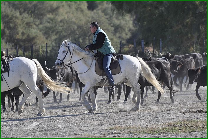 Je ne l’ai pas fait car cette acampado, organisée de main de maître par son président J-N Soubeyran, a connu un évènement heureux, qu’il m’est très difficile de rapporter : Thierry Baudoux, ce gardian blessé sérieusement à Manduel après une attente au fer, celui pour lequel de manière rarement vue, la Bouvine s’est rassemblée pour lui venir en aide, pour l’encourager matériellement (n’est-ce pas Claude ?) et le soutenir à tout moment, ce gardian est remonté à cheval et a participé à la ferrade de l’Acampado des Amis de la Manade Blatière-Bessac !
