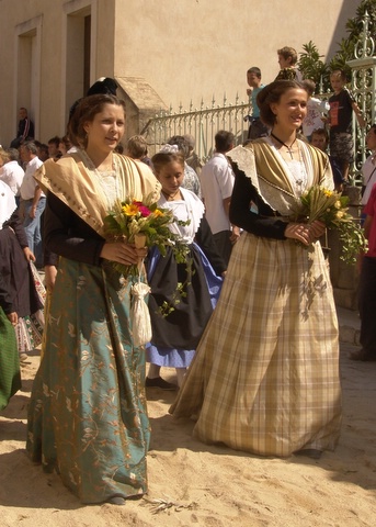 Roland Roche le Maire de Boulbon ouvre le cortège accompagné de Nathalie Chay XIXème Reine d’Arles et d’Herminie Laye demoiselle d’Honneur.