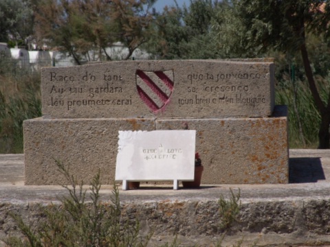 En juillet 1951 ses cendres sont transférées aux Saintes, dans un tombeau situé sur l’emplacement du Mas du SImbèu que les Allemands ont détruit lors de leur débâcle en 1944.