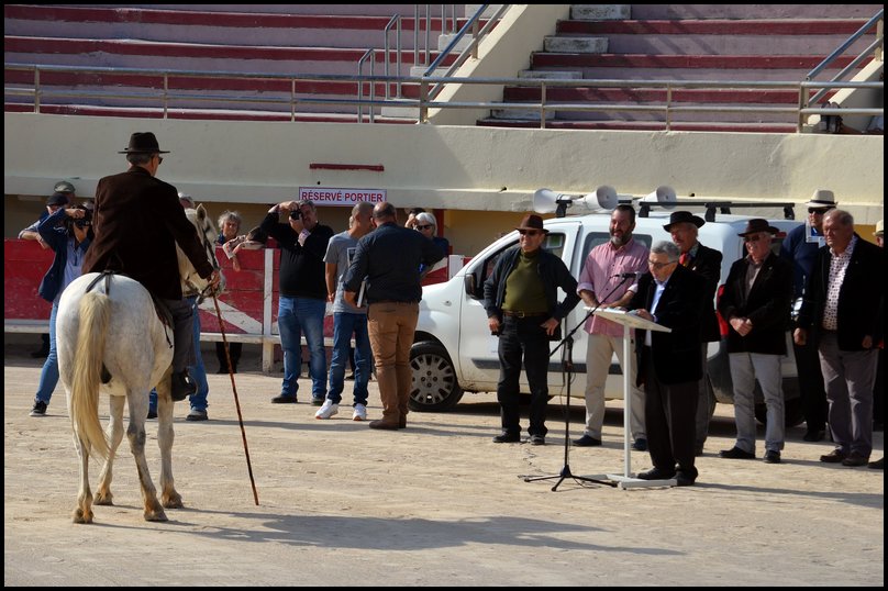Et c’est dans une arène copieusement garnie que Guy Lapeyre a reçu l’hommage pour ses plus de 50 ans au service de la bouvine. Roland Chassain, maire des Saintes-Maries-de-la-Mer, a retracé en français la vie de ‟Guy Lapeyre, dit Guytou”, avant que Gabriel Brun, Majoral du Félibrige, ne fasse de même en provençal.