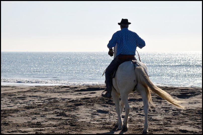 La journée a débuté par le défilé des gardians, avec le départ des arènes jusqu’à la plage Est, théâtre du concours de ferrades.
