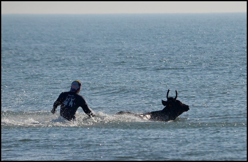 Et c’est la manade Aubanel-Baroncelli qui a remporté le concours. De nombreux jeunes étaient présents, et l’entente avec les gardians était manifeste. À noter que quelques bêtes ont tenté de s’échapper par les marais, ou par la mer, mais Emmanuel Forest, le Président du Comité des Fêtes, veillait au grain, et aucune n’a échappé à sa vigilance.