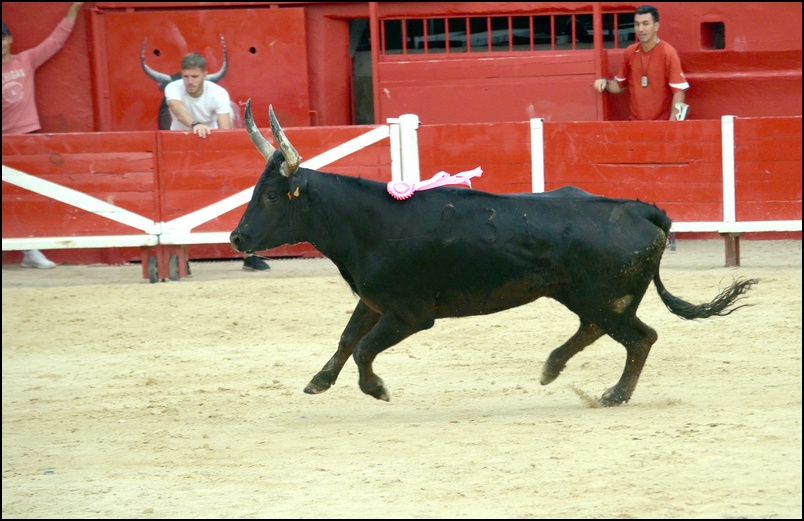 Dès la sortie du toril, il en impose par son physique massif.