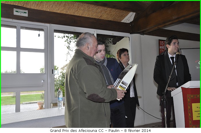 "C’est la manade Paulin qui a accueilli ce dimanche 9 février 2014 le Jury des Afeciouna de course camarguaise pour la troisième remise de ses grands prix. Les différents vainqueurs, cette année tous languedociens, ont apporté avec eux la simplicité et la gentillesse qu’on leur connaissait, et la cinquantaine d’afeciouna ayant fait le déplacement a été honorée de leur présence.