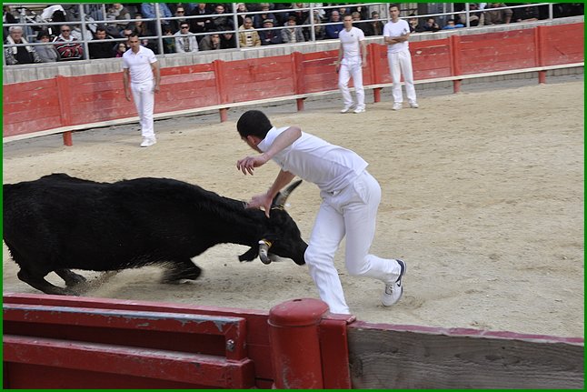 Il n’y avait plus de places libres. En piste les hommes en blanc ont raseté dans l’esprit, dans le respect et, malgré l’heure qui était à la gravité, avec le sourire. Rien que pour cela Messieurs, merci ! Une journée réussie car même les taureaux, malgré une saison qui n’a pas vraiment commencé, ont voulu contribuer à sa réussite en donnant ce qu’ils avaient : leur coeur à l’ouvrage.