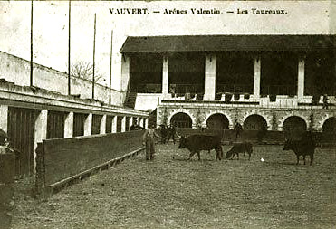 Les premières arènes de Vauvert étaient édifiées au "Castellas ". Elles furent inaugurées le 26 juillet 1898 et furent baptisées " Arènes Valentin ".
