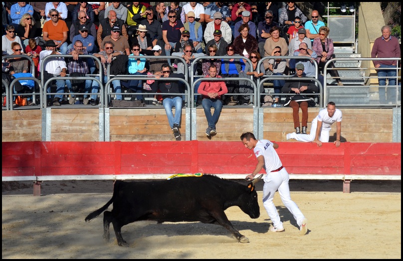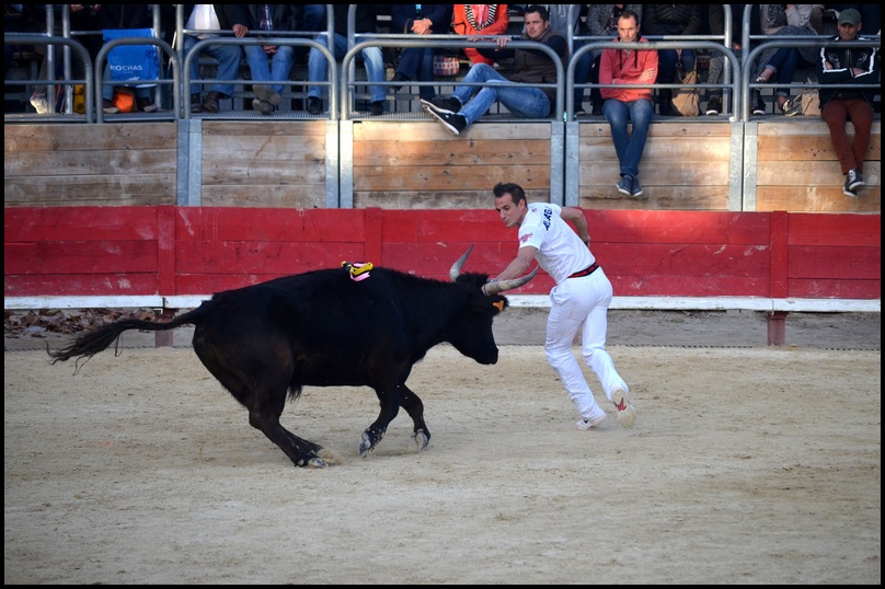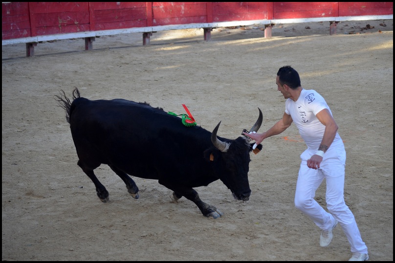Après avoir cédé la cocarde et les glands, il accuse le coup pendant une minute ; les raseteurs le laissent retrouver ses esprits. Il lutte vaillamment face aux blancs qui l’assaillent en rafale pour lui ravir les ficelles ; le disque tourne.